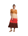 Abito lungo in morbido tessuto multicolor.