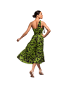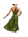 Abito in morbido tessuto con fantasia astratta nera su base verde.