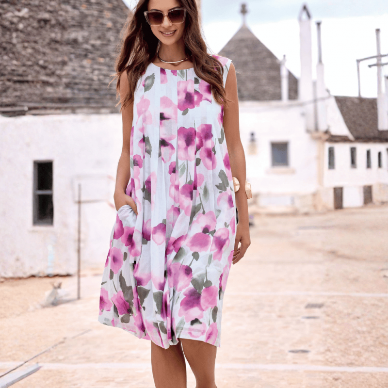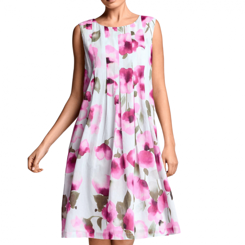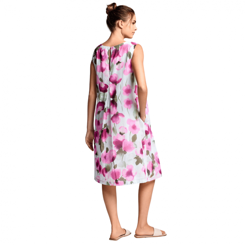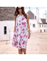 Abito smanicato in cotone che scende svasato.
