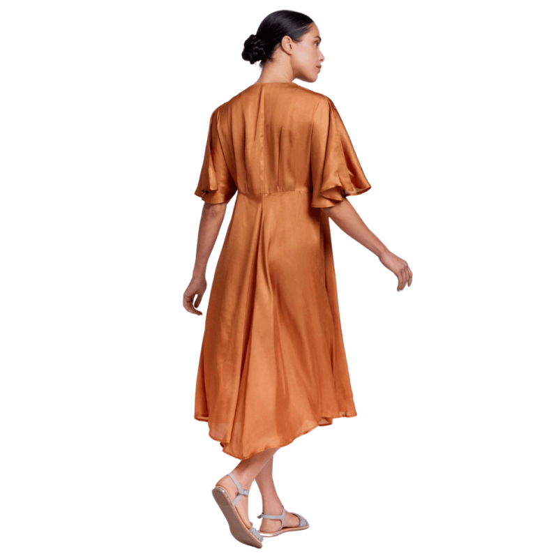 Abito in morbido tessuto ecologico Lyocell dal colore brillante effetto seta.