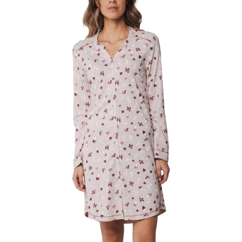 RE-11242-402-6 - Camicia da notte in morbido cotone con bottoni - Beige