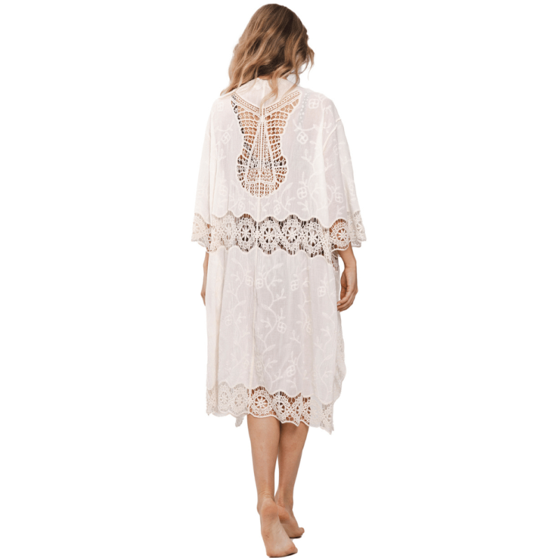 Copricostume ricamato con laccetti frontali di chiusura.
