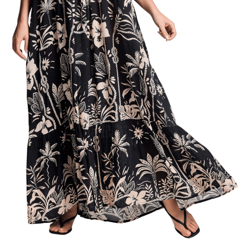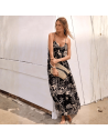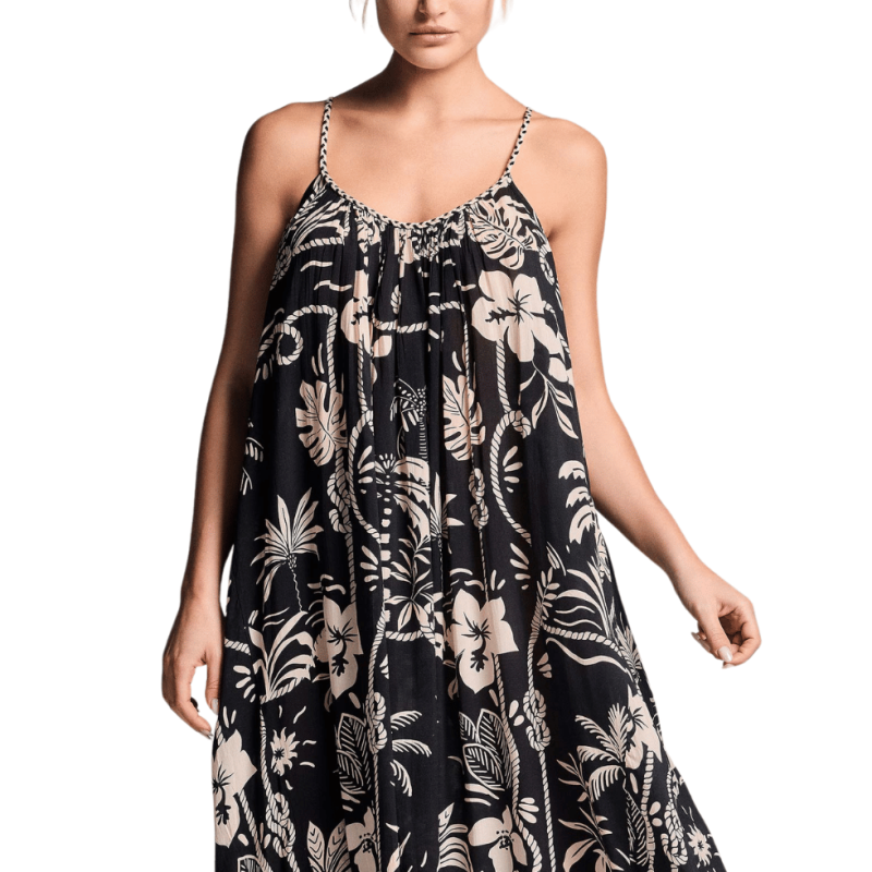 Abito svasato in morbido tessuto fantasia hawaiana.