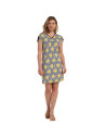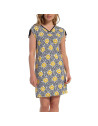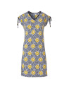 Abitino in viscosa con fantasia floreale astratta gialla e blu.