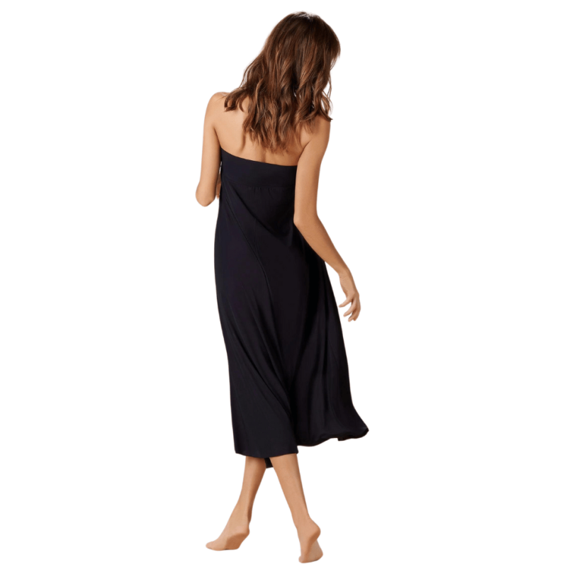Ampia cintura risvoltabile in vita che può fungere anche da top per l'uso di abito senza spalline.
