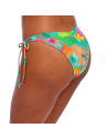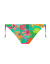 Slip bikini con laccetti fantasia tropicale su base verde.