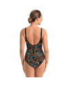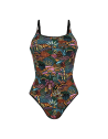 Costume da bagno intero con scollo dritto predisposto per contenere protesi esterne da ambo i lati.