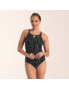 Costume da bagno intero con scollo dritto predisposto per contenere protesi esterne da ambo i lati.