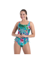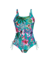 Costume da bagno intero con scollo dritto predisposto per contenere protesi esterne da ambo i lati.