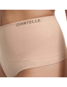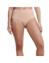 Vita alta con zona rinforzata, bordatura piatta che non segna.