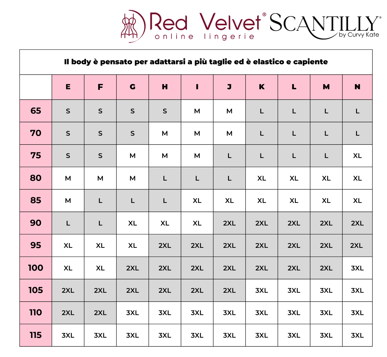 Il consiglio di Redvelvet: consultare la tabella taglie dedicata per la vestibilità un body che è il primo top seller mondiale per numero di pezzi venduti per Curvy Kate, ottimo sostegno pur essendo un body senza ferretto, sexy ed elegante da sfoggiare anche come sottogiacca.