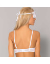 1- Reggiseno brassiere senza ferretto con coppe a triangolo soft in raffinato tessuto e pizzo con fiocchi decorativi.