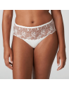 Ricamo floreale su base naturale in bianco avorio dal contrasto delicato sulla pelle.
