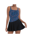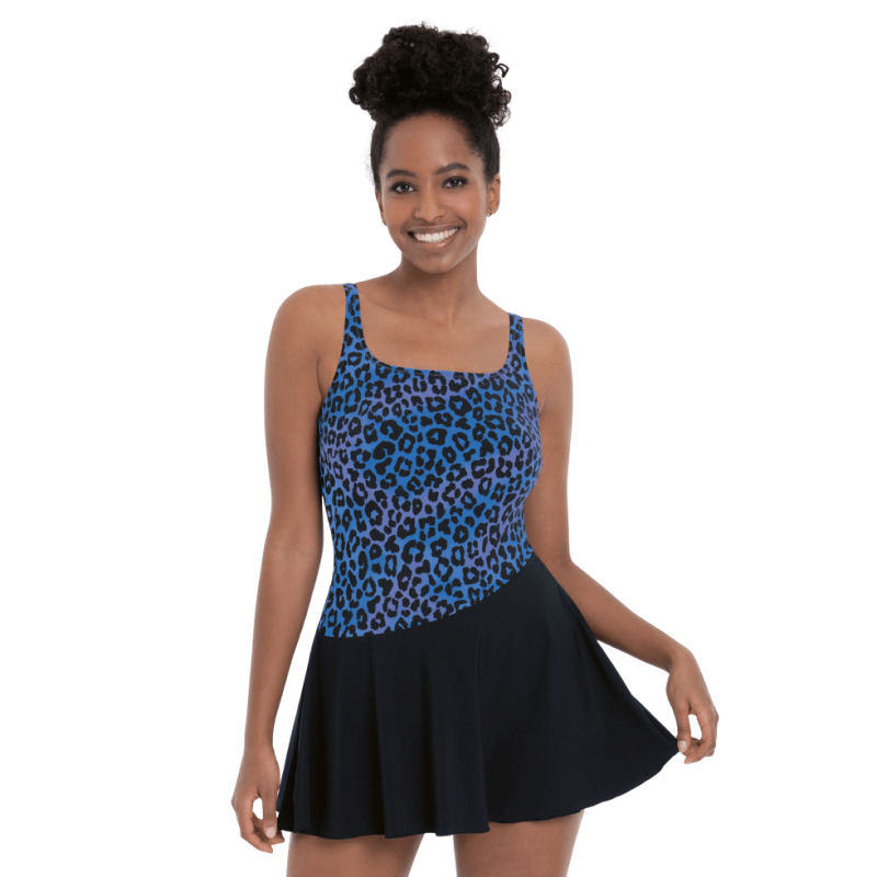 Fantasia animalier e gonnellino a contrasto.