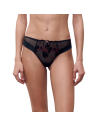 Tanga in tulle e pizzo interamente ricamato con motivo floreale dettagli lurex.