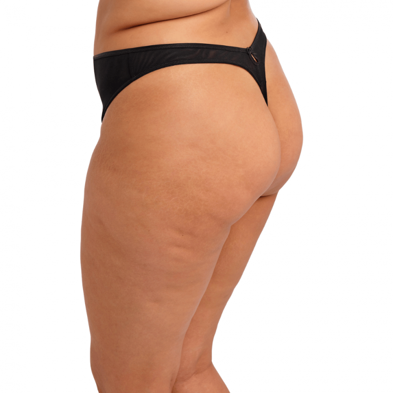 Dettagli frontali in pizzo a contrasto che a contatto con la pelle crea un effetto elegante e sensuale.