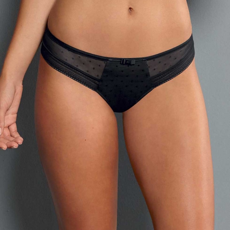 Brasiliana in morbido tessuto con pizzo con motivo floreale.