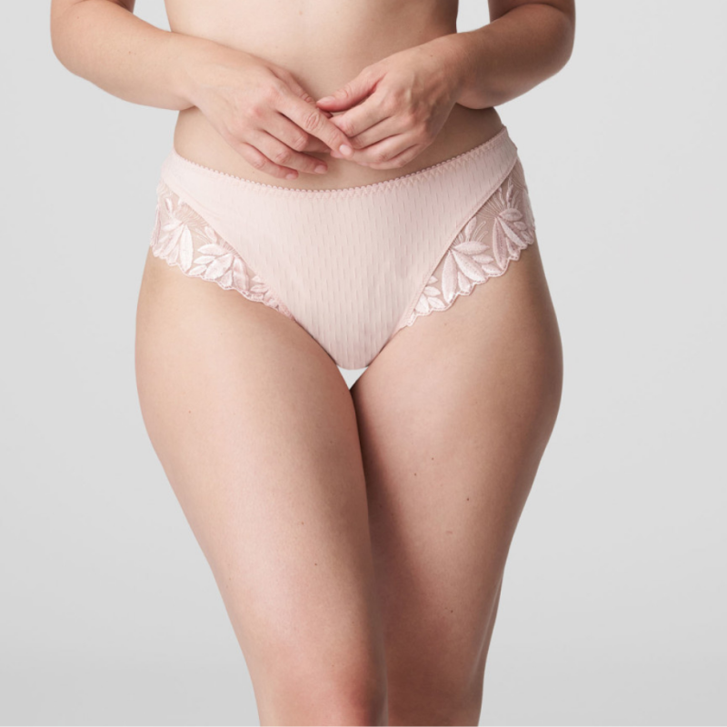 Il fine ricamo alla sgambatura dona un tocco sofisticato.