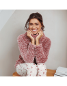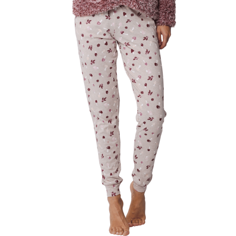 RE-41242-404-2 - Pigiama due pezzi manica lunga in morbido tessuto - Dark red funghetti