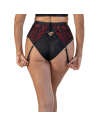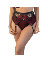 Finemente decorato da pizzo sulla parte frontale rosso con dettagli neri ed effetto corsettatura per un look più glamour.
