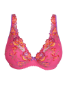 Colorato reggiseno con coppe imbottite a triangolo e scollatura profonda, abbellito da ricami all-over per incorniciare con eleganza il décolleté.