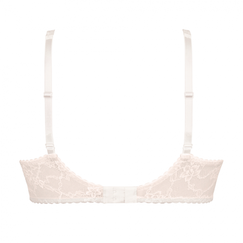 Al centro cucitura a T e pizzo doppiato assicurano una naturale forma del seno, bordo seno in pizzo elastico che evita la fuoriuscita del seno e ne assicura il massimo contenimento frontale.