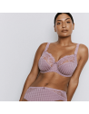Reggiseno in tre parti con ferretto, un fresco motivo a scacchi e un pizzo sensuale sul décolleté e sulle spalline.