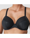 Bordo seno in pizzo elastico con disegni geometrici che evita la fuoriuscita del seno e ne assicura il massimo contenimento frontale.