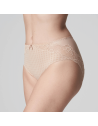 Un lussuoso slip a vita alta coprente, rifinito con un pizzo ornamentale nella sgambatura