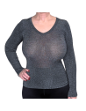 FR-DF7153-931- Maglia manica lunga scollo a V lana-seta con lurex - Grigio