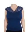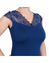 Maniche corte e scollo a V decorate frontalmente con elegante pizzo.