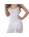 Retro interamente in tulle bianco. Perizoma coordinato incluso. Si adatta alle forme del corpo. Vestibilità buona.