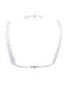 Pizzo decorativo in sotto seno impreziosito da ricami lucidi effetto raso con disegno grafico.