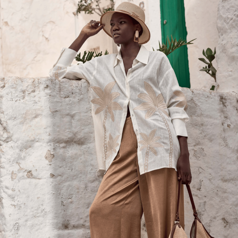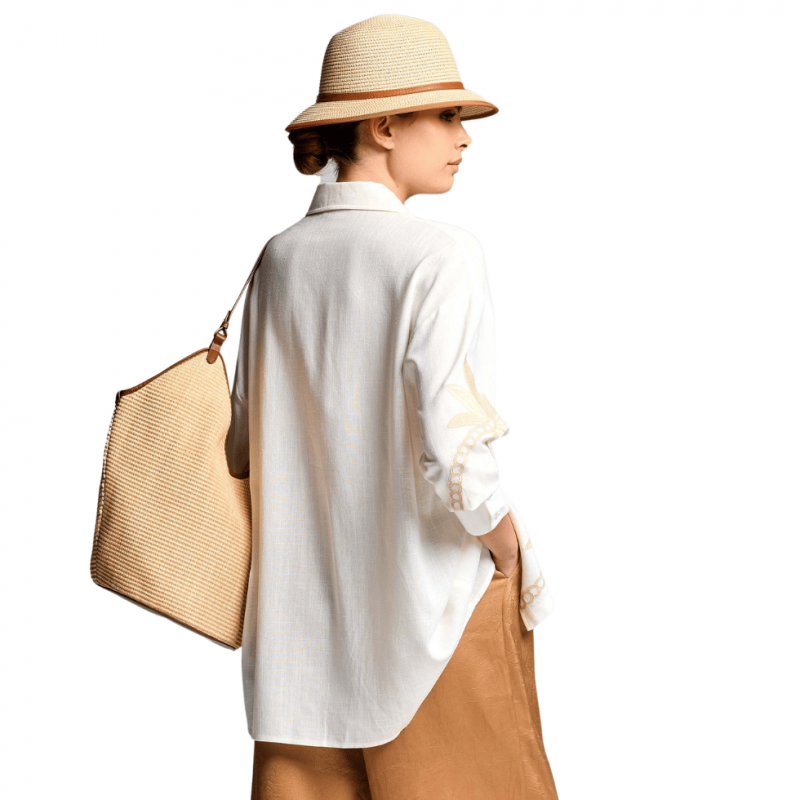Camicia oversize in un tessuto morbido di misto lino e cotone.