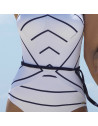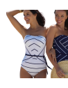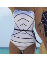 YM-81051 - Costume da bagno intero a fascia Calma - bianco righe blu